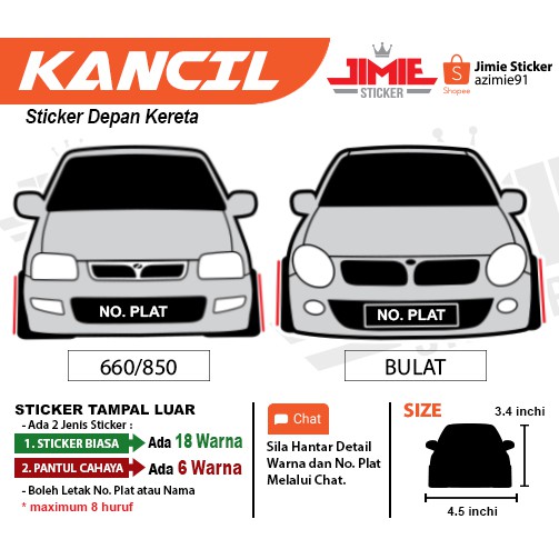 Sticker Kereta Sticker Depan Kancil Bulat Kancil Petak 660 Dan 850 Custom Warna Dan Nombor Plat Shopee Malaysia